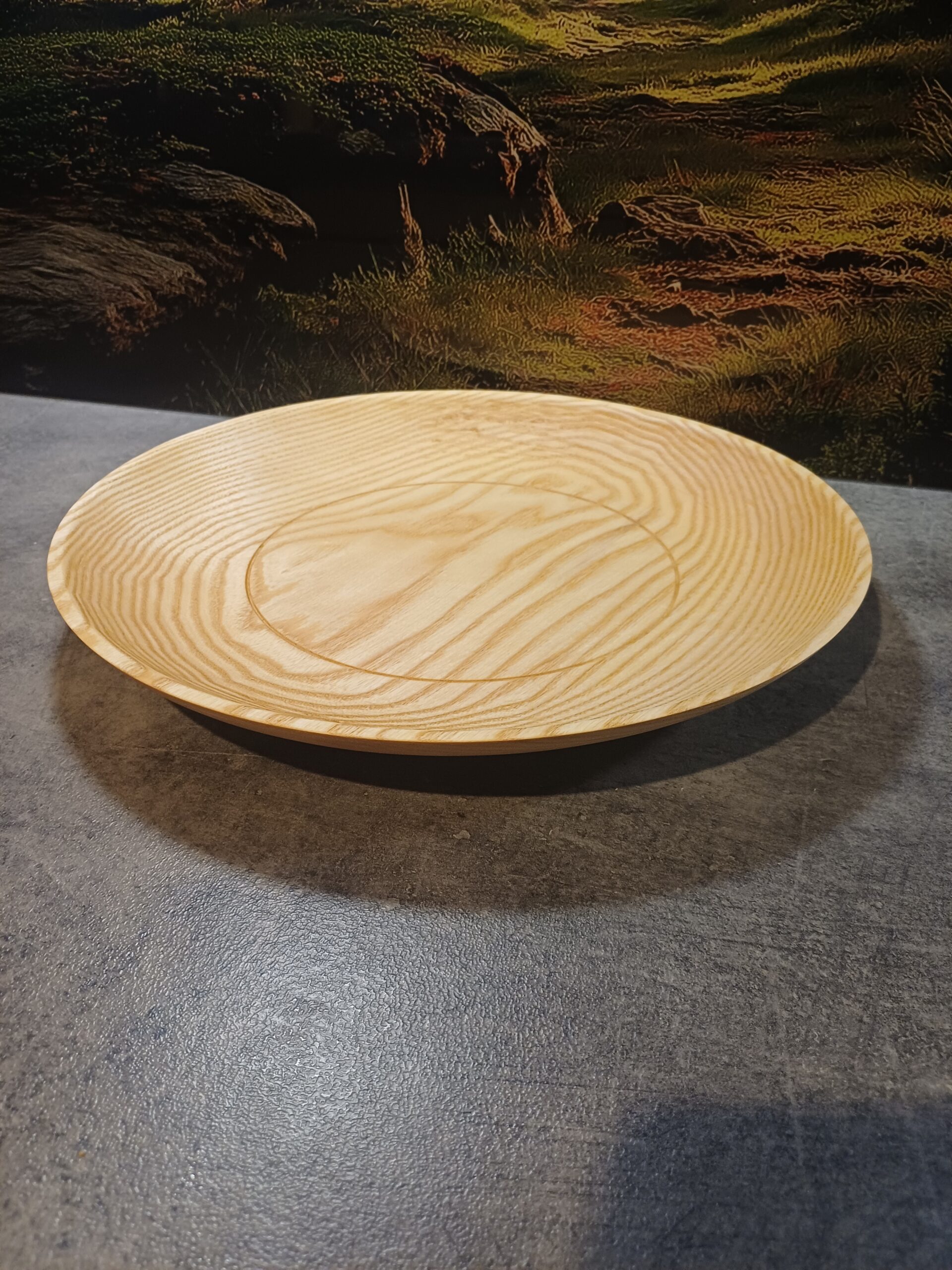 Ręcznie wykonany półmisek z litego drewna jesionu.