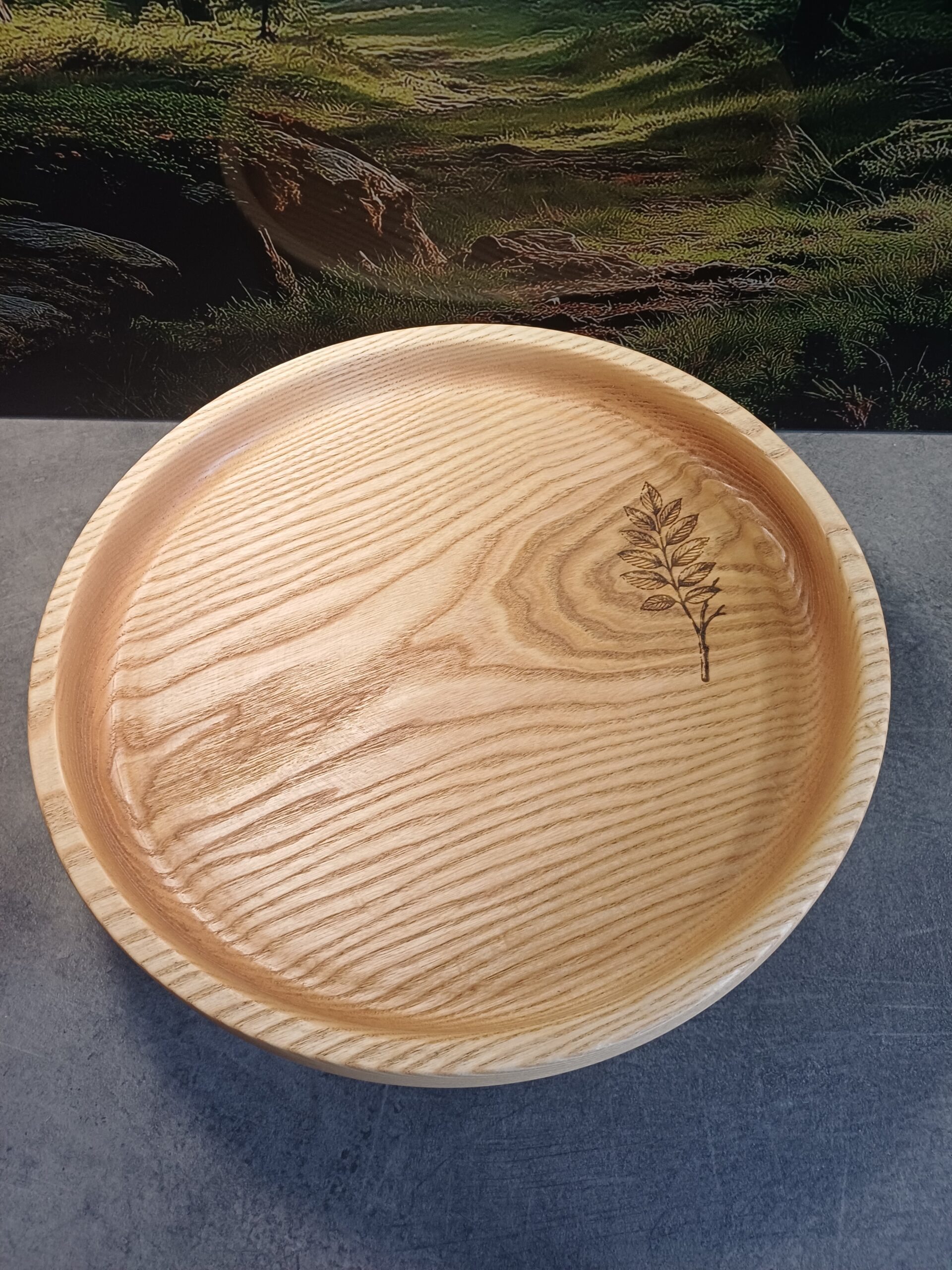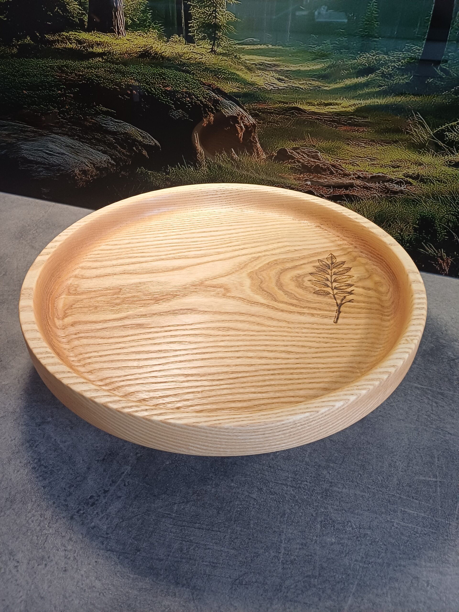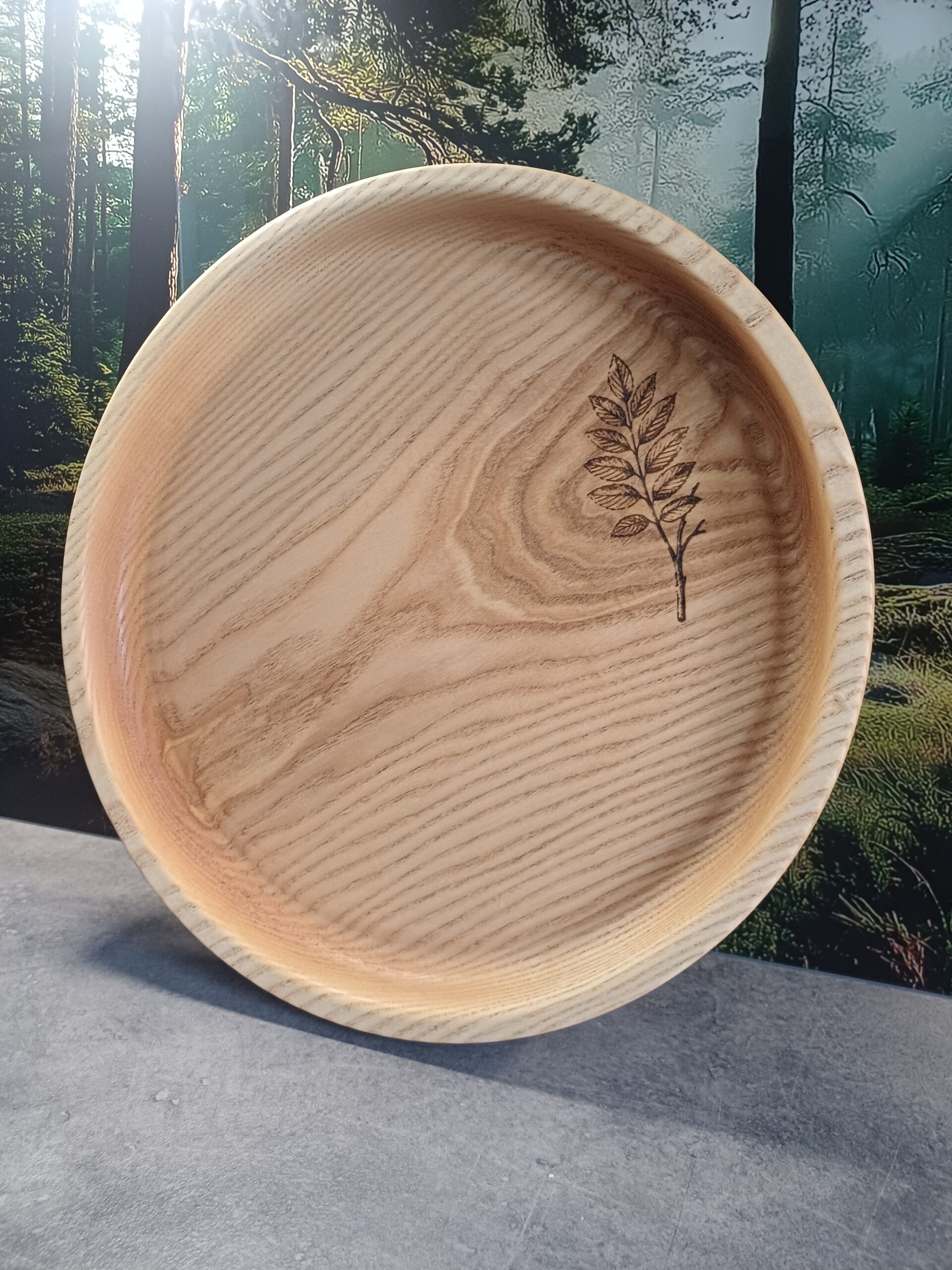 Ręcznie toczona patera wykonana z litego drewna jesionu.
